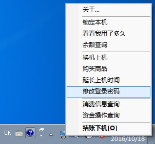2、登录后读者可根据需要自行修改密码,密码修改方法为鼠标右键点击桌面右下角“机房管理客户端”进行修改。