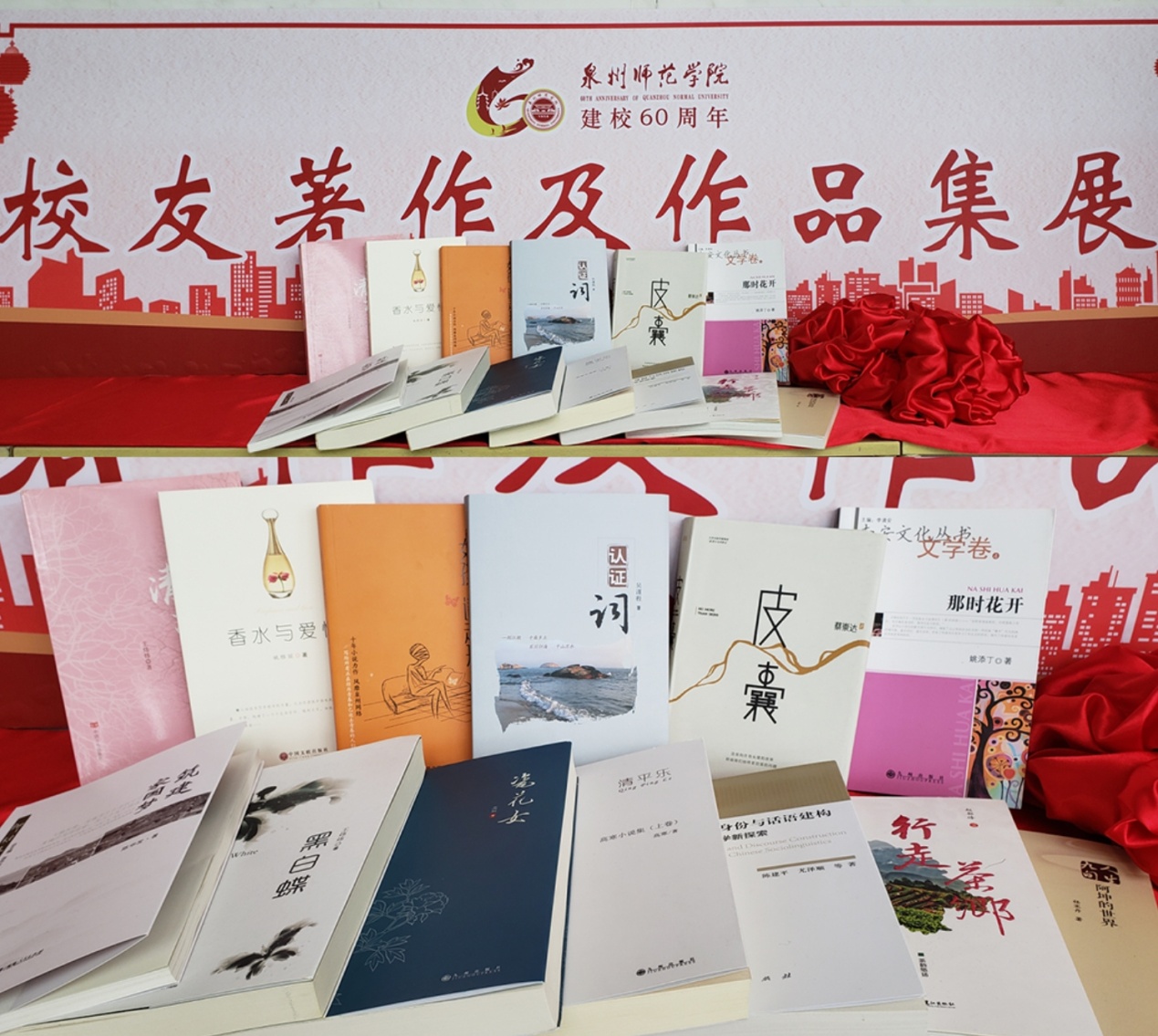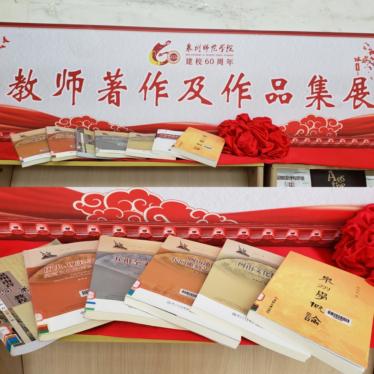 为庆贺泉州师范学院60周年校庆,全面、生动展示师院学子60年风采和教师优秀成果,激励后学前进,建设书香校园,图书馆举办“泉州师范学院校友、教师著作及作品集征集与展示活动”。活动得到了学校相关部门和二级学院的大力支持,以及各届校友和在校教师的积极响应,图书馆在短时期内收集到大量来自于各届校友和本校教师捐赠的著作及作品集。
