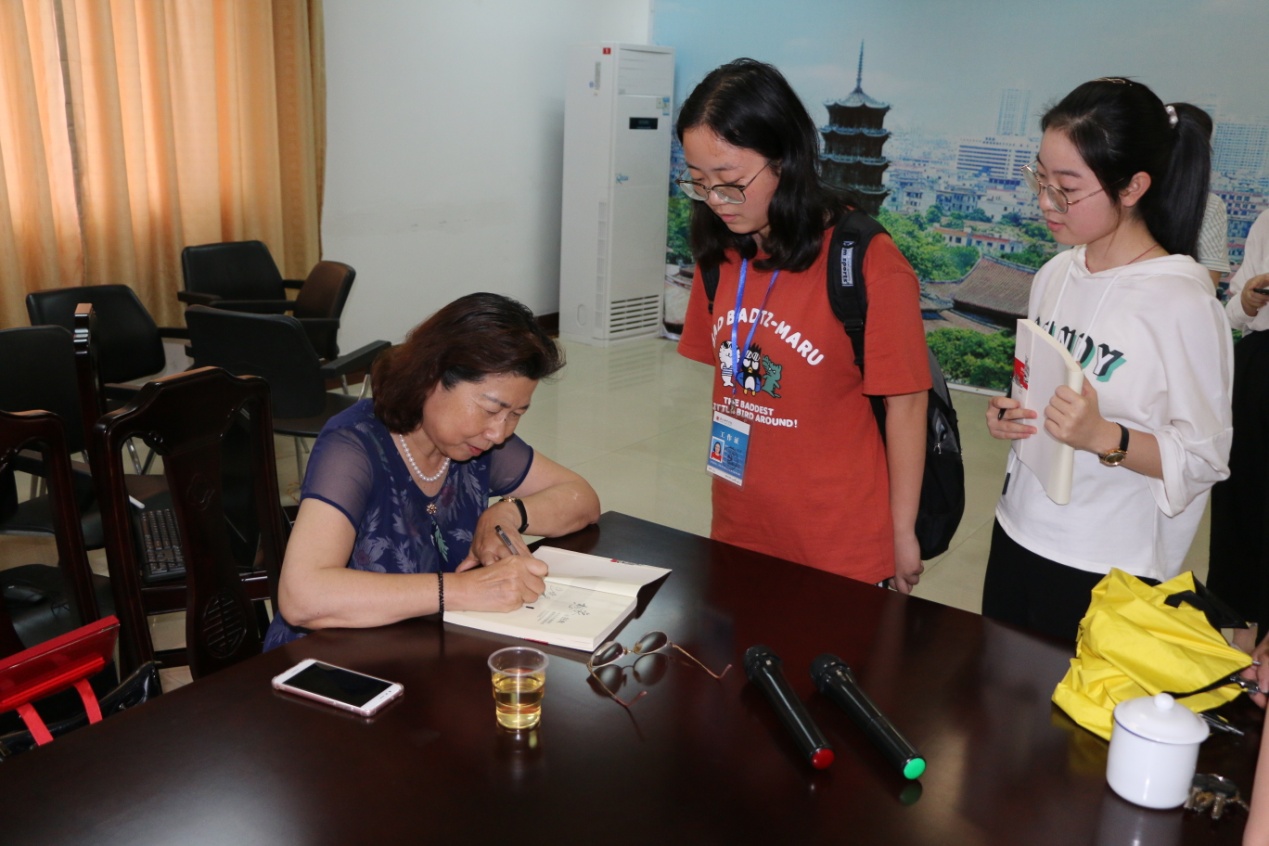 现场读者还和戴冠青教授进行了精彩的互动。他们就大学生活、文学阅读中的疑惑向戴教授寻求帮助。戴教授从所学专业角度给予针对性指导,读者受益匪浅,现场时时爆发掌声与欢笑。此外,5位幸运读者得到了戴教授现场签名的珍贵图书《想象的狂欢——作为文化镜像的闽南民间故事研究》。