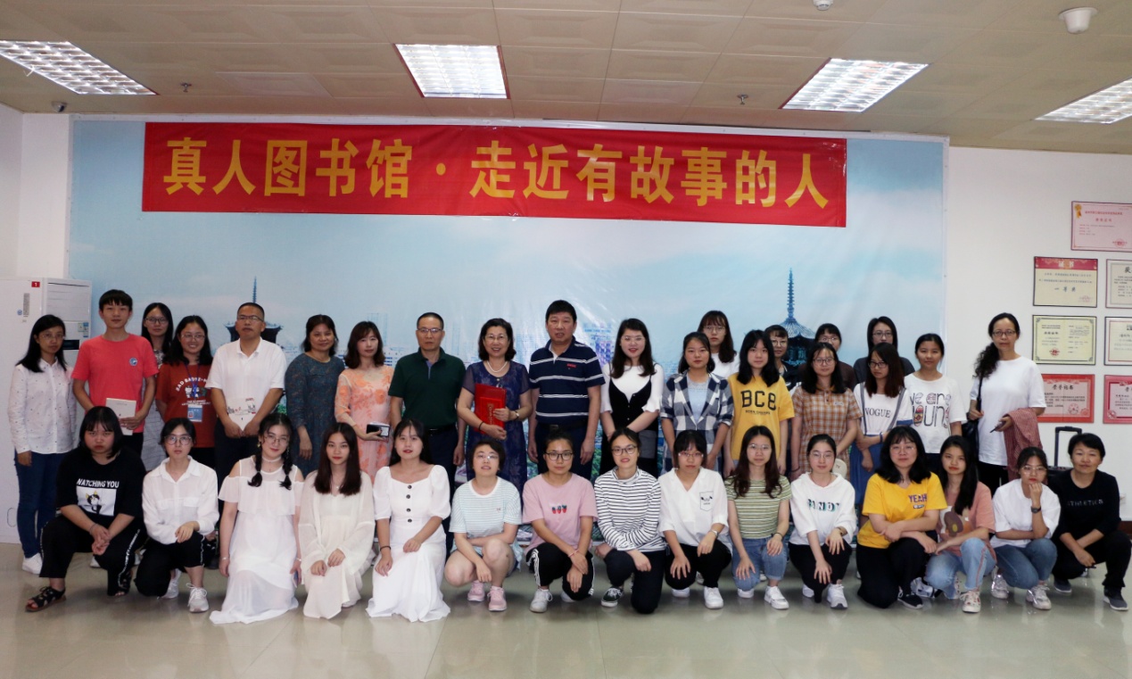 图书捐赠仪式后是2019年第三期真人图书馆活动。戴冠青教授以“阅读,建构新的生命世界”为主题,为现场读者深刻解读了李白、海明威、卡夫卡等作家的经典作品,分享了余光中《今生今世》《我的四个假想敌》等作品简单语句中的深刻情感,潘向黎《白水青菜》对简单的白水青菜汤的独到描写。戴教授以其自身丰富的阅读、治学经历为现场师生带来了一场文学艺术盛宴。