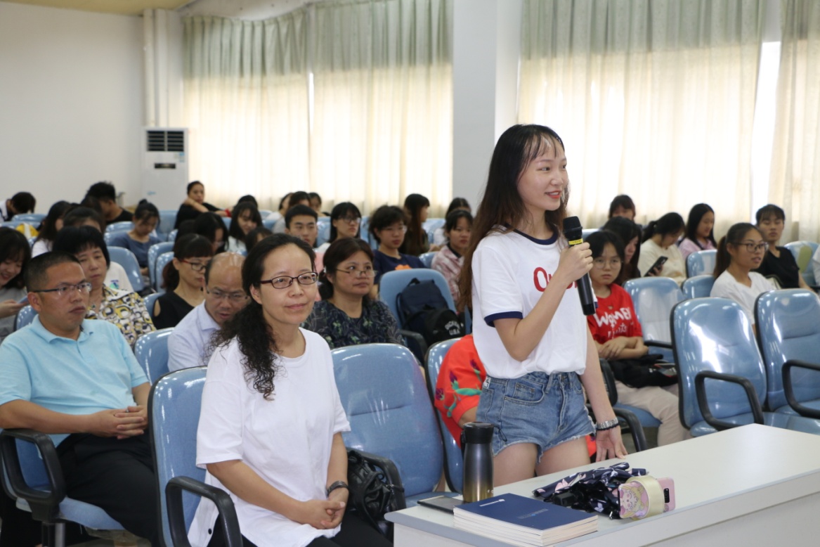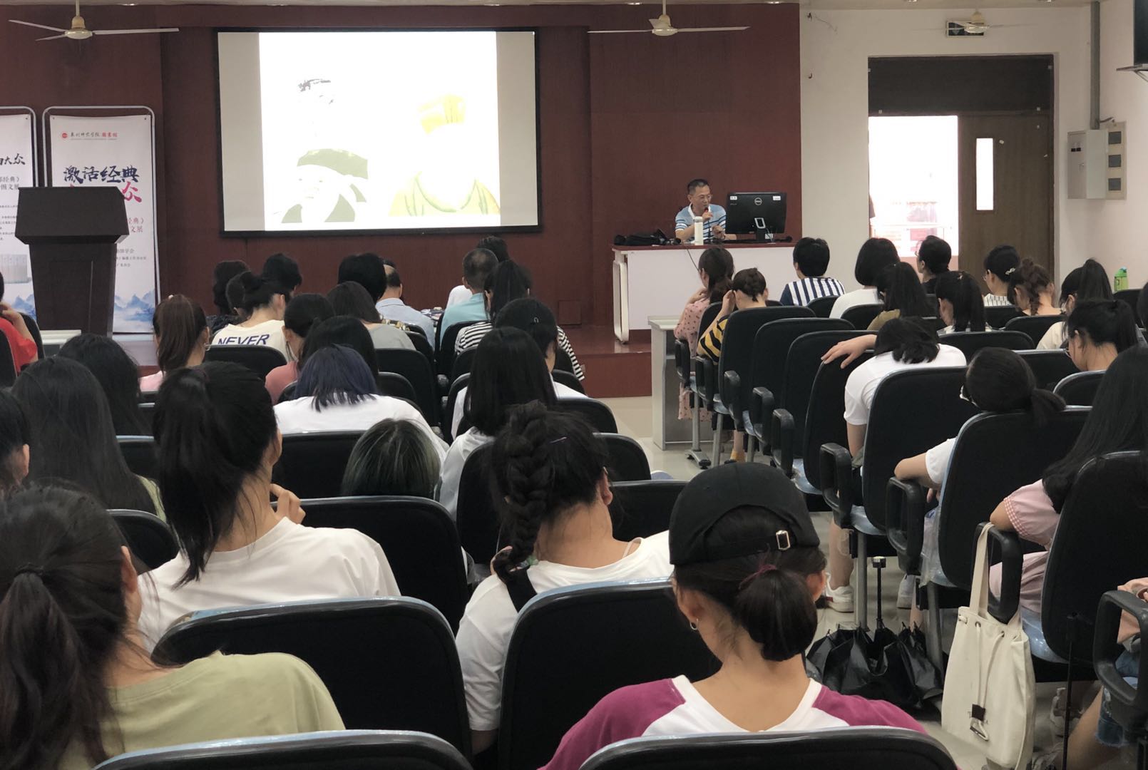 林老师刚讲完,一名听众意犹未尽,向林老师发出疑问:“林老师,听完您的讲座,我对中华传统经典很感兴趣,我想知道有哪些适合大众阅读的经典可以推荐?”,林老师耐心的解答道:“我们师院的大多数学生将来要走上教学岗位,传统经典还是很有必要读的,如《大学》《中庸》《论语》,除此之外,我们还可以读《近思录》等经典著作。”