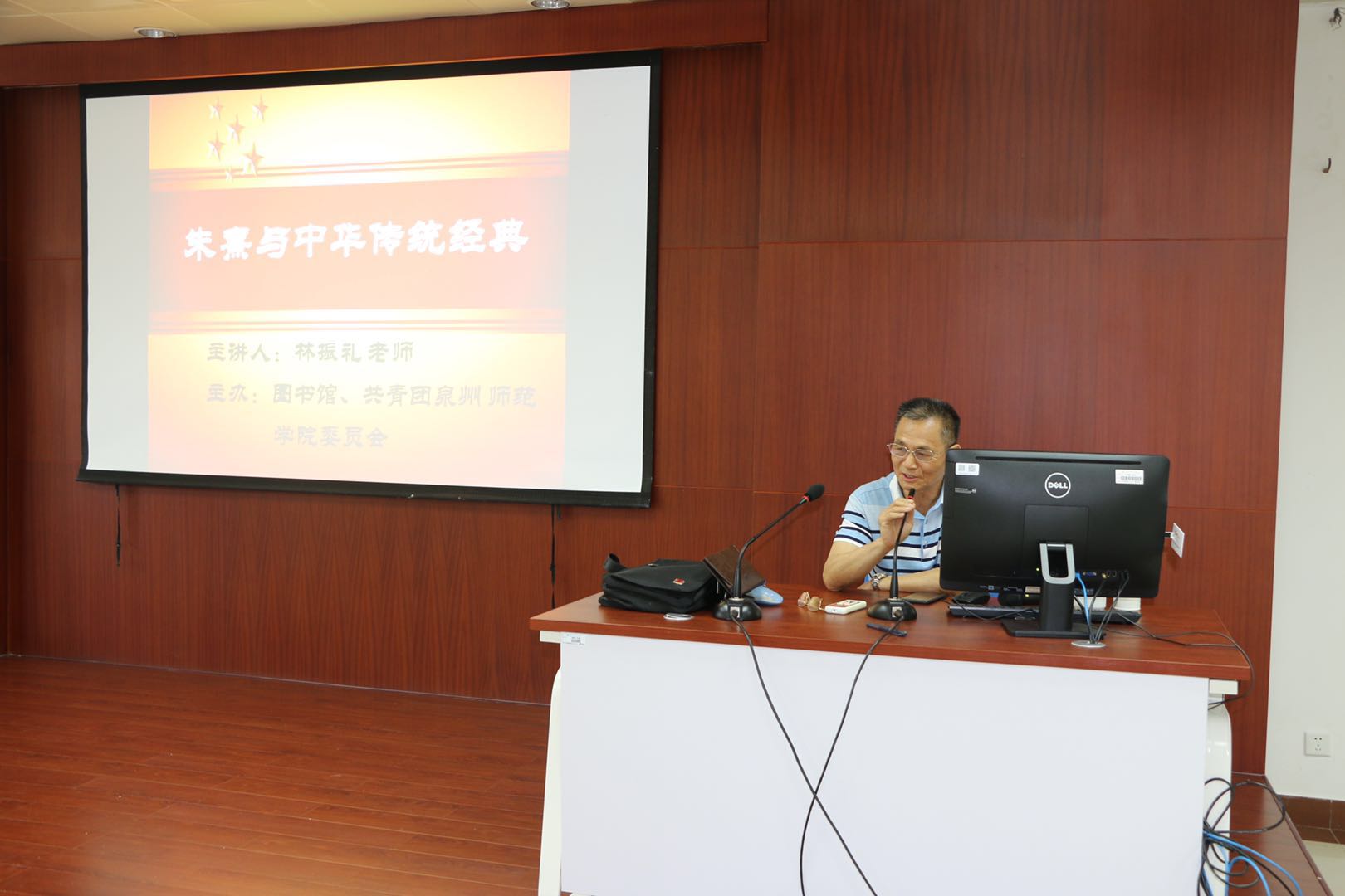 其次林老师进一步阐述了朱熹与中华传统经典的关系,包括《四书》,《五经》《老子》《楚辞》《孙子兵法》《史记》等,通过林老师的阐述我们了解到中华传统经典的博大精深,以及朱熹与经典的关系和贡献,从侧面让听众领略了中华传统经典的魅力。