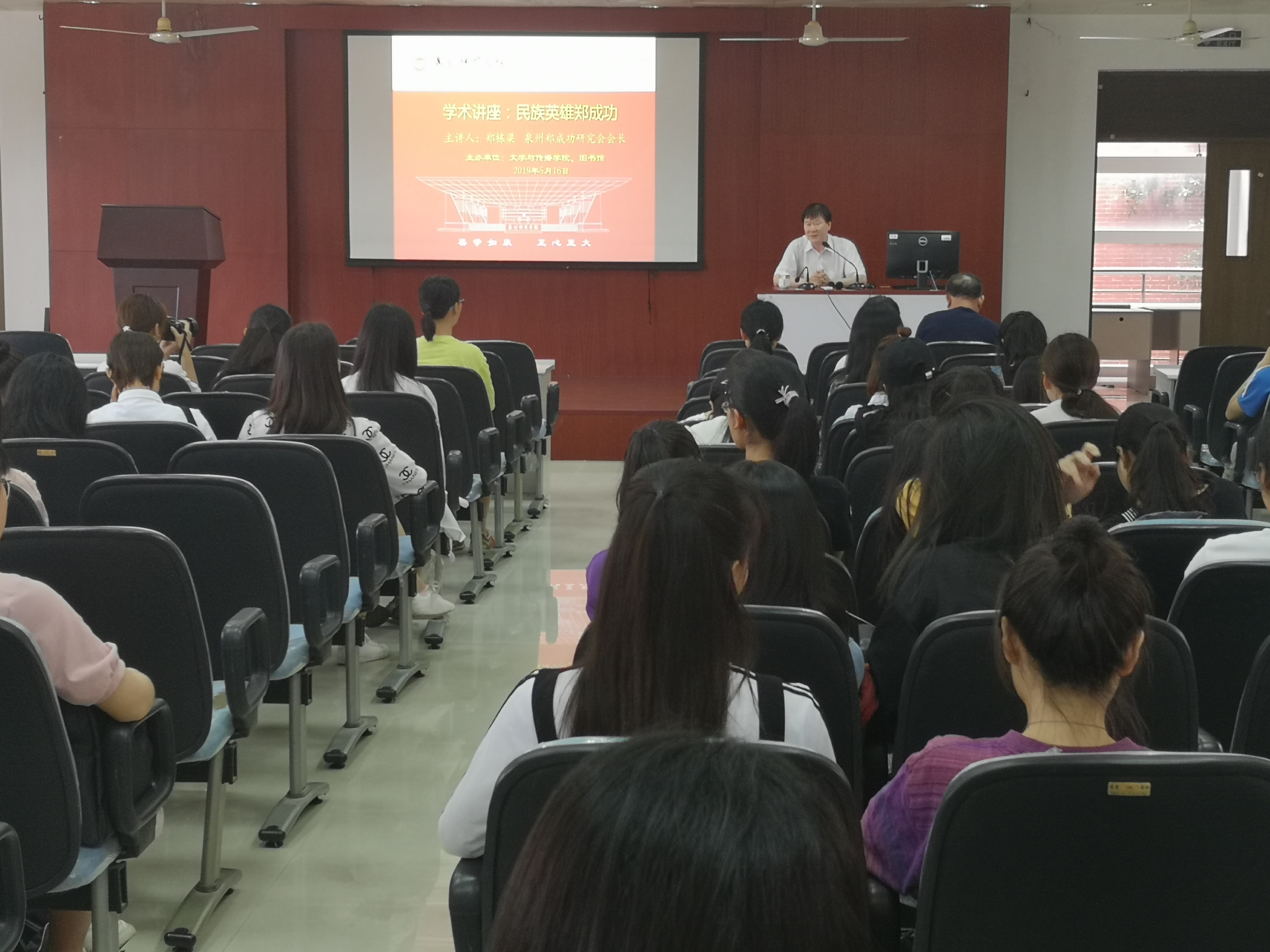 5月16日下午,由图书馆和文学与传播学院联合主办的“民族英雄郑成功”的学术讲座在图书馆四楼学术报告厅举行。主讲人为国际郑成功文化交流协会会长、泉州郑成功研究会会长郑栋梁研究员。郑会长从郑成功的成长历程入手,讲述了郑成功投笔从戎的心理历程,以及他抗击清军、收复台湾的两大历史事件,提出弘扬郑成功精神对于传承爱国主义、维护两岸和平统一具有重要的时代价值。最后,郑会长精彩回答了同学们提出的“如何看待郑成功坑击清军的民族立场”等问题,讲座在热烈的掌声中圆满结束。