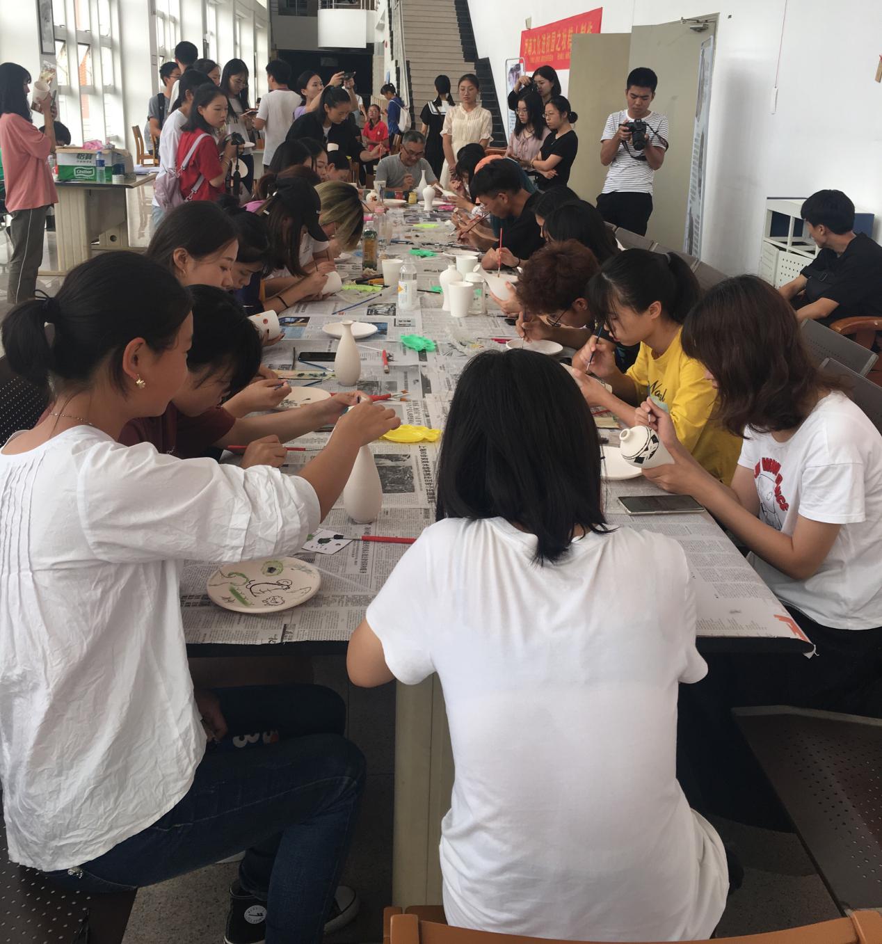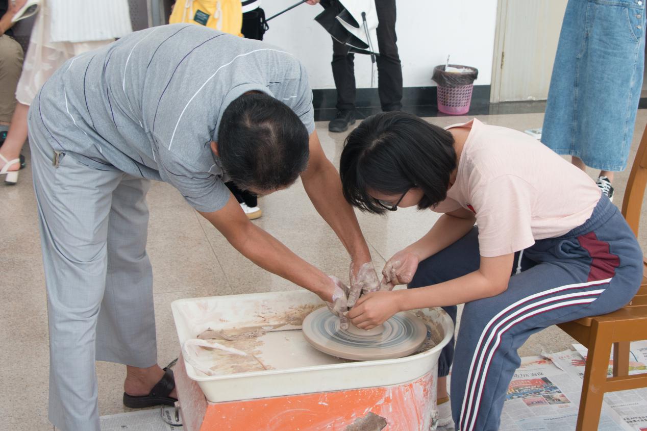 晋江磁灶传统陶瓷制作体验课堂一直以来都是“闽南非遗进校园”的主角,今年也不例外。今年的课堂依旧分为三个部分:手工拉胚、陶瓷彩绘和陶瓷雕塑。在手工拉胚体验区内,同学们在传承人吴连生老师的指导下,陶瓶、陶罐、陶杯都做得有模有样,创意十足;陶瓷彩绘区内,吴康为老师带领同学们绘出各种别致优美的风景图画,祖国的锦绣河山跃然于陶瓷之上,可谓是“妙笔生花”;陶瓷雕塑区的同学们则在吴小清老师的帮助之下,充分发挥了自己的创意与想象力,捏塑出小兔子、机器猫、恐龙等各种陶土造型。