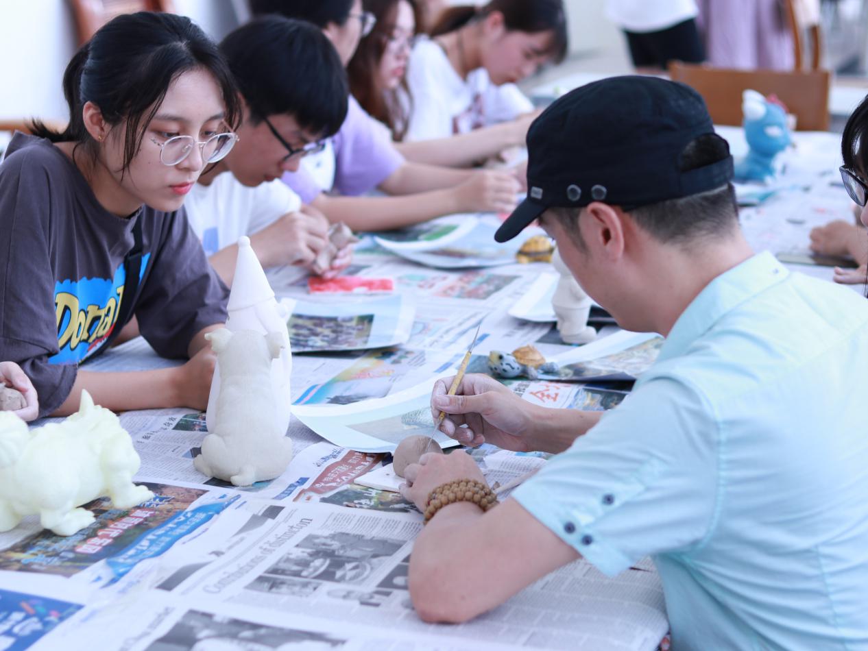 妆糕人泉州市级非物质文化遗产传承人张明铁老师的课堂前同样一片欢乐,毫不起眼的面团一经张明铁老师一番揉、捏、搓幻化出栩栩如生的孙悟空、猪八戒、小猪佩奇等形象,参与体验的学生个个跃跃欲试,各展神通。