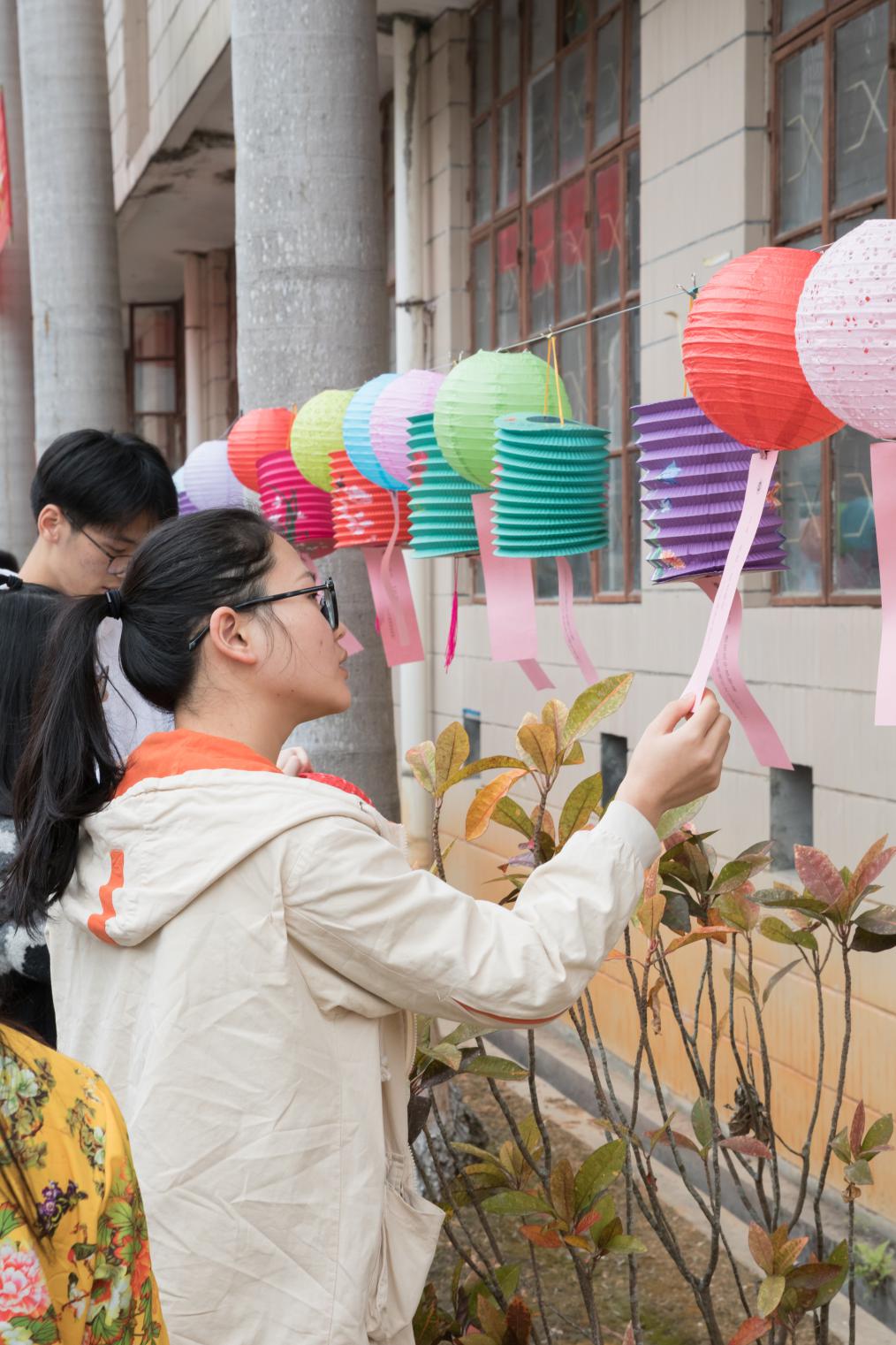 除了闽南非遗体验课堂,本次活动还开展了闽南文化灯谜活动。灯谜现场,五彩缤纷的灯笼下面吊着谜语的彩条随风飘扬。学生穿梭其间,流连忘返,现场热闹非凡。