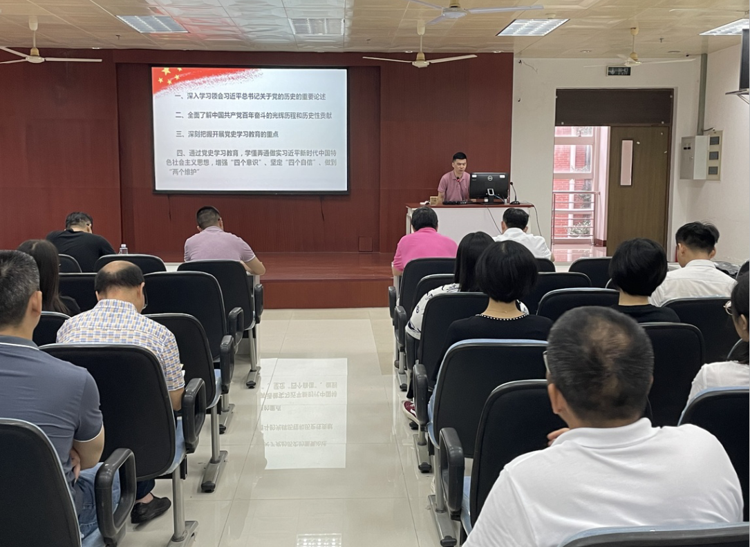 郑老师主要从深入学习领会习近平总书记关于党的历史的重要论述、全面了解中国共产党百年奋斗的光辉历程和历史性贡献、深刻把握开展党史学习教育的重点等方面来阐释我党百年历史,图文并茂,用生动典型的事例和大量详实的数据娓娓道来我党的光辉历程,彰显党全心全意为人民服务宗旨和党与人民的血肉关系等精神。