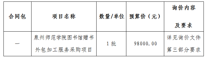 泉州师范学院图书馆赠书外包加工服务采购项目询价公告
