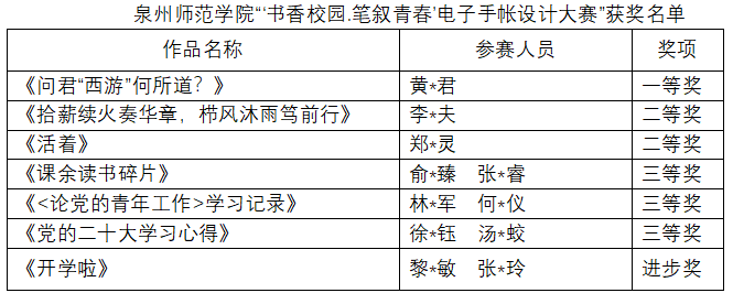 为深入贯彻我校素质教育理念,展现我校学子的青春风采和精神风貌,丰富校园阅读文化生活,由图书馆党总支、学生工作部联合主办,华为天生会画承办,校习近平新时代中国特色社会主义思想读书社和读者协会协办的泉州师范学院“‘书香校园·笔叙青春’电子手账设计大赛”于3月4日下午两点在图书馆五楼丝路会议中心成功举办。