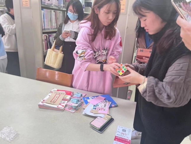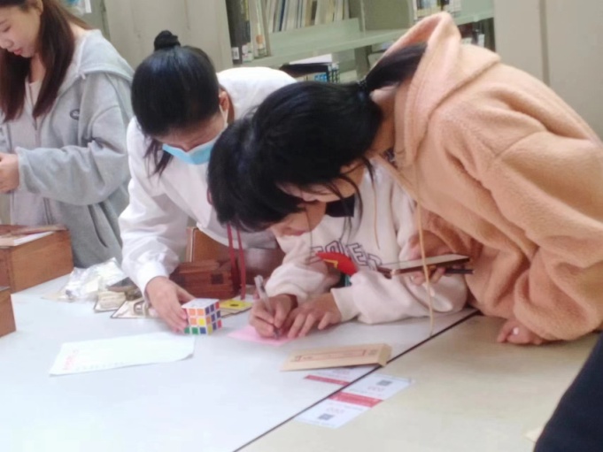 在线索布置上,主办方设置了馆藏书目检索、学术资源检索、图书排架等内容,增加了拼图、魔方等环节,提高了活动的难度和趣味性。同学们兴趣高涨,参与度很高,在开放报名首日即已超过90组。活动现场十分火爆,同学们在比赛中既感受到了乐趣,也学到了知识。