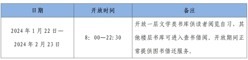 (3)寒假期间,图书馆常用电子资源照常提供服务,馆际互借与查收查引等暂停服务。