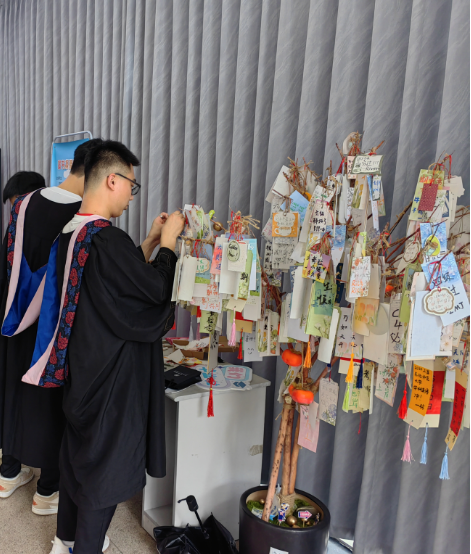 图书馆在一楼大厅入口处布置了祝愿毕业生心想“柿”成的“柿子树”,供毕业生们在“柿子树”上留下寄语与愿望。