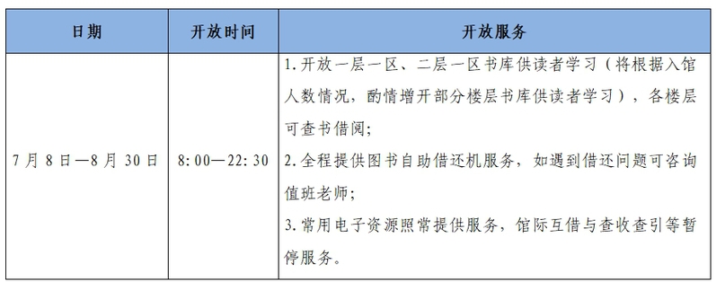 (3)7月6日-7日,8月31日、9月1日,图书馆闭馆进行内务整理和卫生清洗;因闭馆给读者造成的不便,敬请谅解。