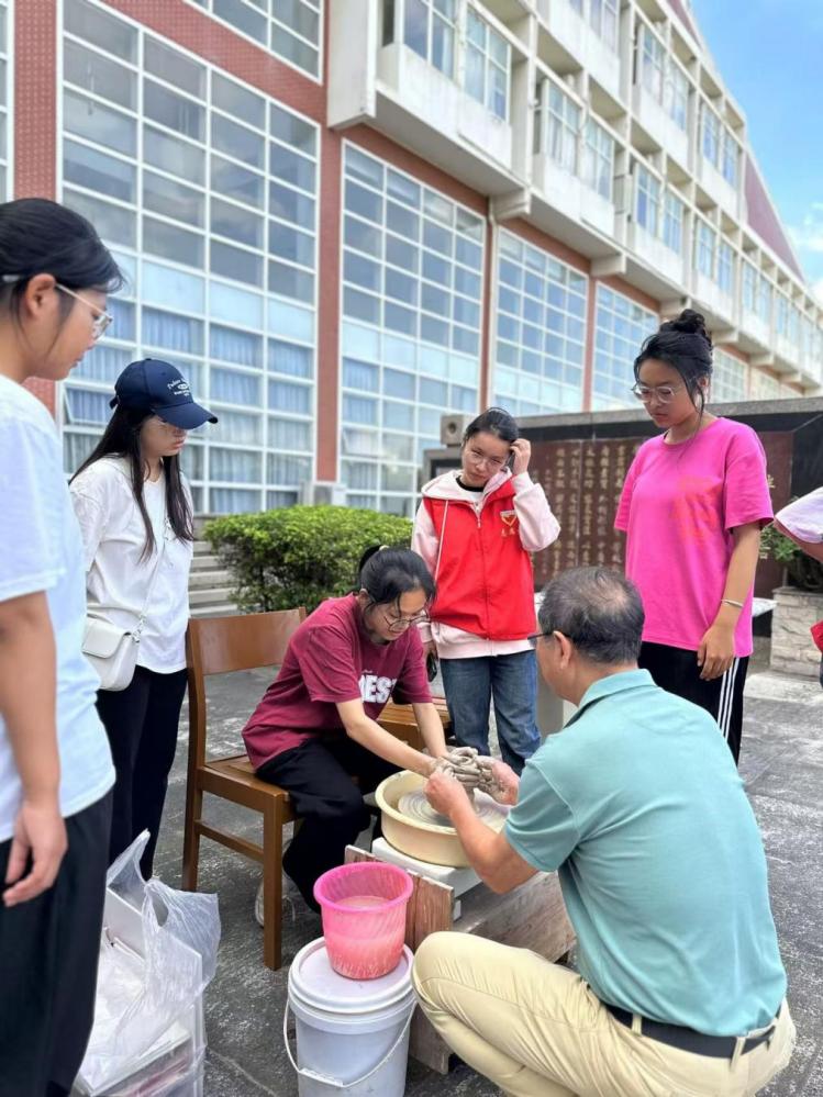 陶瓷拉坯体验现场,在泉州市非遗代表性项目磁灶陶瓷烧制技艺传承人吴松森老师的指导下,体验者们的双手缓缓旋转、上升,逐渐拉制成瓶、碗、盘等形态各异的陶瓷坯体。负责指导陶瓷彩绘的吴康为老师则带领体验者们用五颜六色的颜料描绘精美的瓷盘、花瓶等坯体,使得冰冷的陶土在巧手下绽放出五彩斑斓的生命。