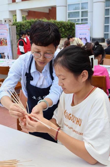 在永春纸织画体验区域,福建省非物质文化遗产保护项目永春纸织画代表性传承人方碧双老师正专心致志地指导体验者们用细长的纸丝作为经线,用与之等宽的纯白宣纸丝作纬线,以一种近乎魔术般的手法,将薄薄的宣纸放于纸织框上穿梭,编织成一幅幅立体而生动的画卷。