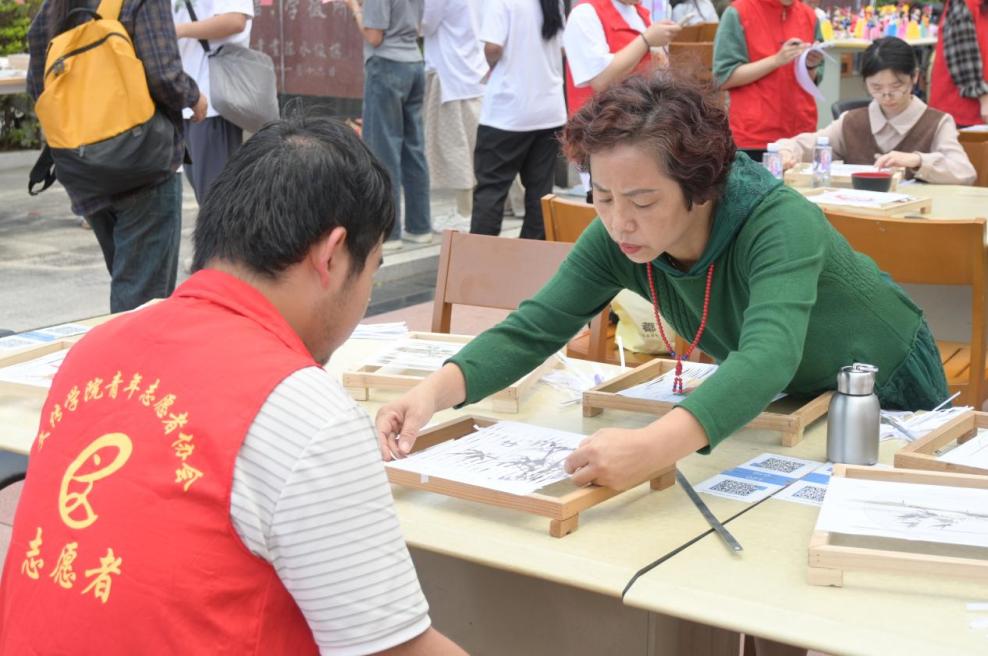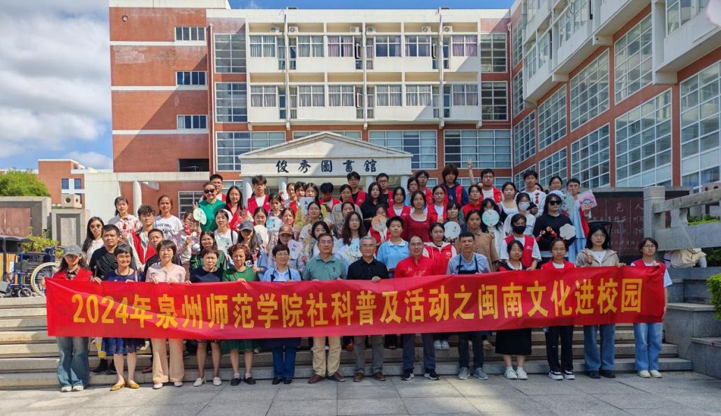 11月17日上午,2024年泉州师范学院社科普及活动之闽南文化进校园活动在我校图书馆正门广场成功举办。本次活动以“体验民间非遗,传承闽南文化”为主题,由图书馆、图书馆党总支、社会科学发展研究中心(社科处)主办,校闽南文化传播协会、校读者协会承办,邀请妆糕人、糖画、陶瓷拉坯、陶瓷彩绘、安溪竹藤编、永春纸织画、漆扇等非遗项目的传承人进校开展现场教学和体验活动,吸引了三百余名师生参加。