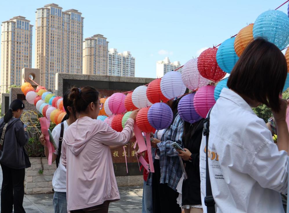 闽南文化灯谜区域也围满了师生。五彩缤纷的灯笼下系着印有谜语的纸条,随风飘动。广大师生竞相猜题,闽南文化也在欢声笑语中传承与发扬。
