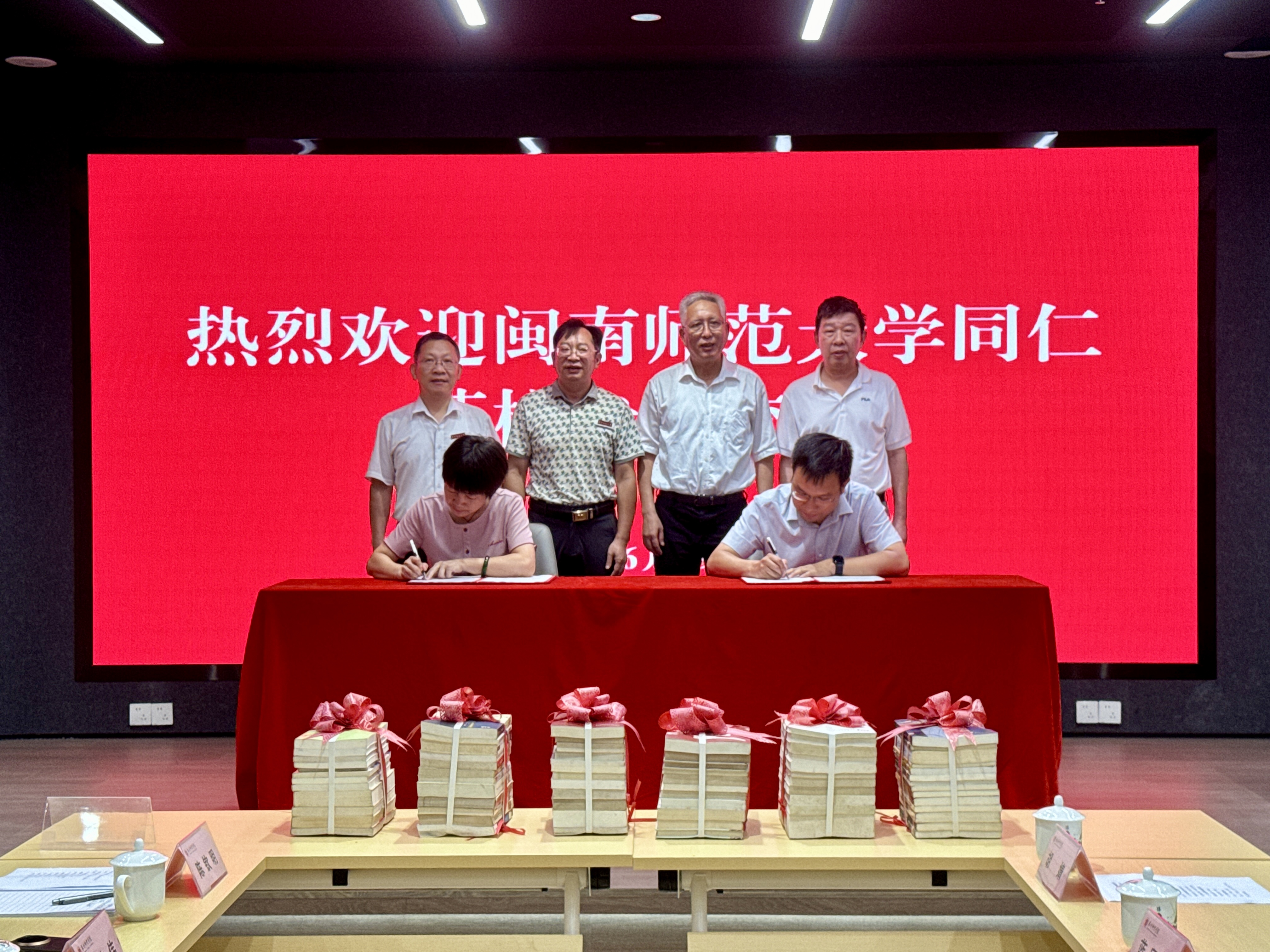 双方签署了馆藏资源合作共建协议书,闽南师范大学向我校图书馆捐赠四千册图书作为联合馆藏资源,此次签约标志着两所高校图书馆在资源共享、合作发展方面迈出了重要一步,是两馆合作的新起点,对推动两校馆藏资源整合与业务实践合作共赢具有重要意义。