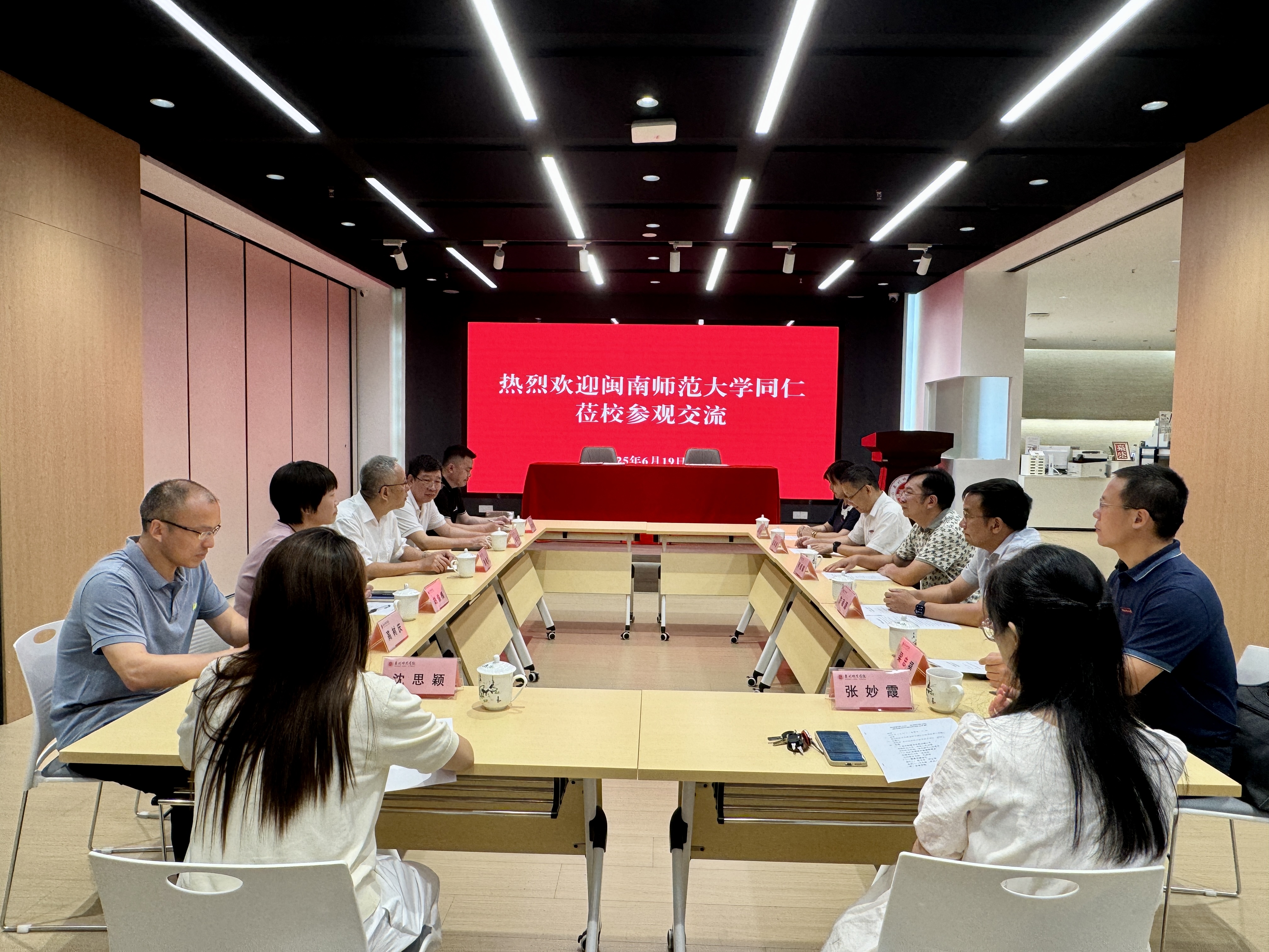 6月19日下午,闽南师范大学副校长何绍福率图书馆班子成员等一行到访我校,就图书馆服务立德树人、支撑学科专业建设、AI赋能业务创新和馆际资源共建共享等方面进行交流,并签署馆藏资源合作共建协议书。党委副书记陈晓风参加座谈会。副校长夏侯建兵会见并陪同参观图书馆红色悦读空间。我校图书馆党政负责人及部分管理人员参加。