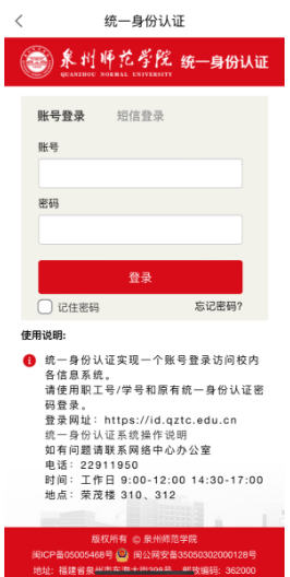 移动图书馆APP:下载移动图书馆APP,在登录界面选择其他方式登录,输入单位名称:泉州师范学院图书馆,跳转到统一身份认证账户登录界面,输入统一身份认证账号和密码即可登录。