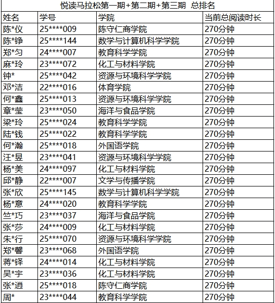 备注:每次活动结束后公布累计阅读时长排名。