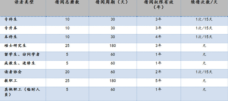 答:借阅图书到期前10天允许续借1次,续借时间为15天。续借方式: